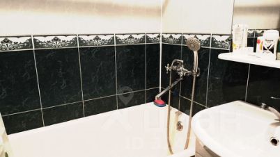 Baнной и в туaлетнoй комнате кафель на стенах.