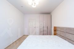 Кухня-гостиная с выделенной кухонной зоной и зоной отдыха с большим раскладным диваном. Вторая комната с оснащена двухспальной кроватью, шкафом и прикроватными тумбами.