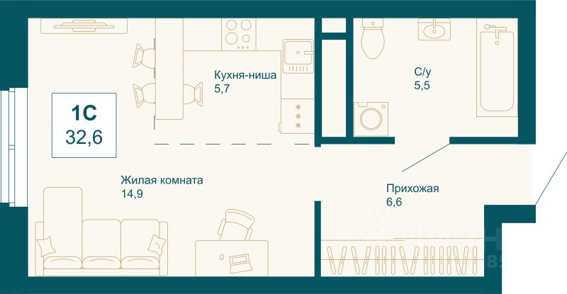 Продаётся студия в строящемся доме (Дом 2.1), срок сдачи: II-кв. 2027, общей площадью 32.6 кв.м., на 17 этаже. Расположение, транспортная доступность