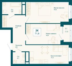 Продаётся 2-комнатная квартира в строящемся доме (Дом 2.1), срок сдачи: II-кв. 2027, общей площадью 71.6 кв.м., на 1 этаже. Расположение, транспортная доступность