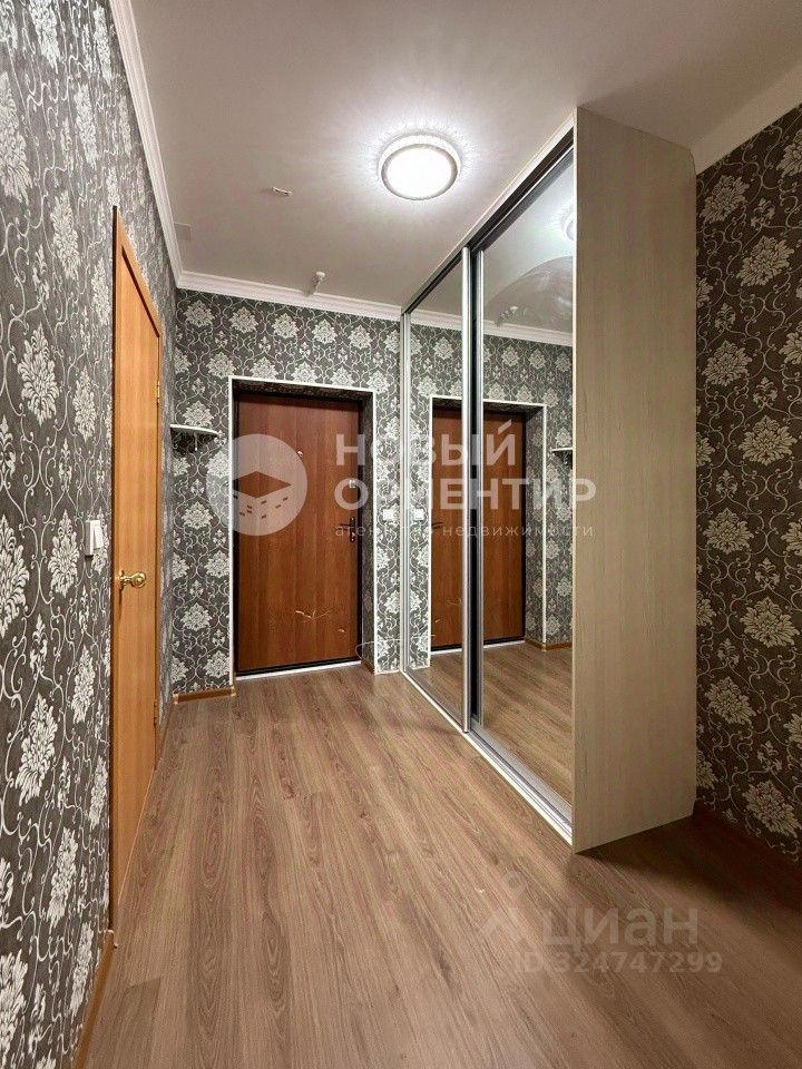 Комната правильной формы площадью 16 кв.м. Вместительный коридор, где размещен большой шкаф-купе, также можно оборудовать гардеробную. Совмещенный санузел отделан плиткой в мокрой зоне.