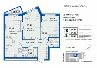 Продается 2 квартира 41 в жилом комплексе комфорт-класса.