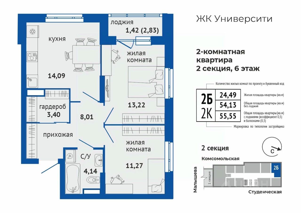 55,55 м²