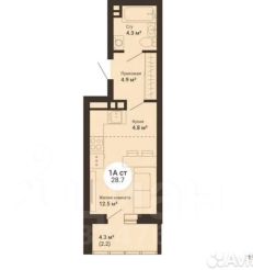 Продается современная студия в новом монолитном доме 2024 года постройки в Екатеринбурге. Квартира расположена на 22 этаже 25-этажного здания, с общей площадью 28.3 кв. м. Высота потолков составляет 2.8 метра, что создает ощущение простора. Из окон открывается вид на улицу.