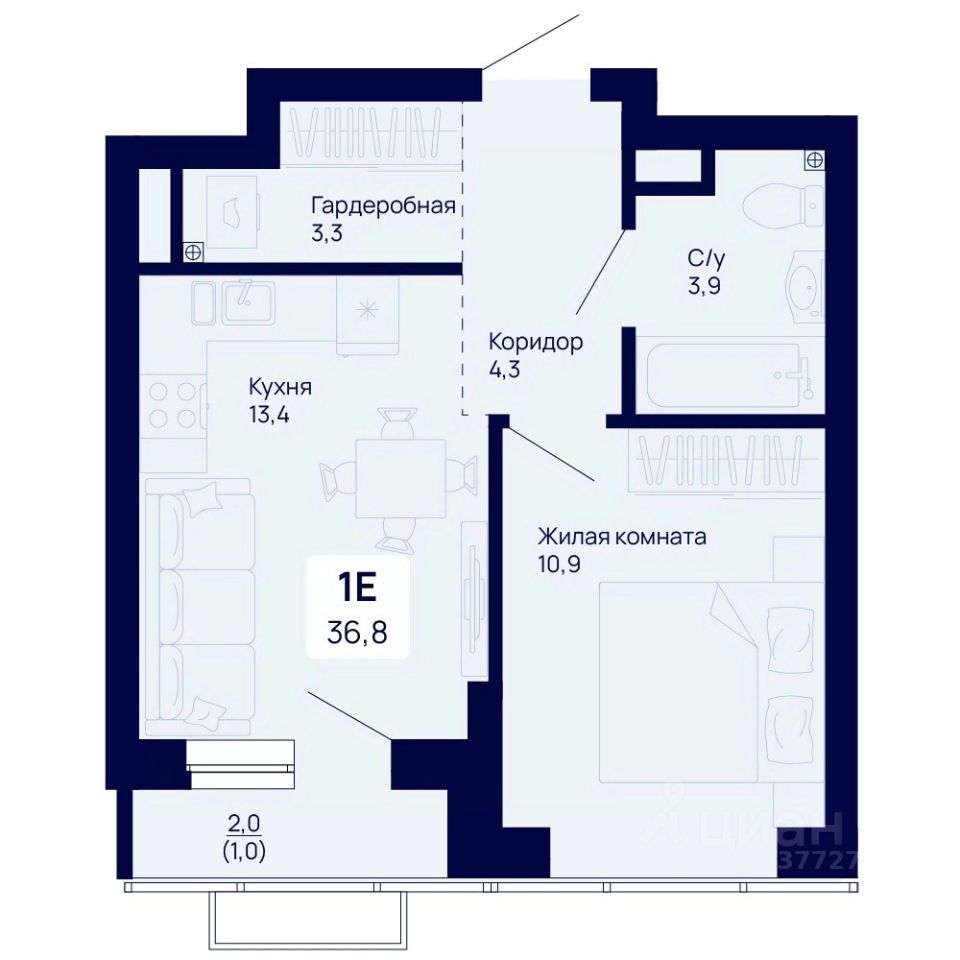 Продаётся 1-комнатная квартира в строящемся доме (Дом 1), срок сдачи: III-кв. 2026, общей площадью 36.8 кв.м., на 11 этаже. Новый жилой комплекс "Галактика" от застройщика "Ривьера-Инвест-Екб" расположен в г. Екатеринбург на ул. проспект Космонавтов.