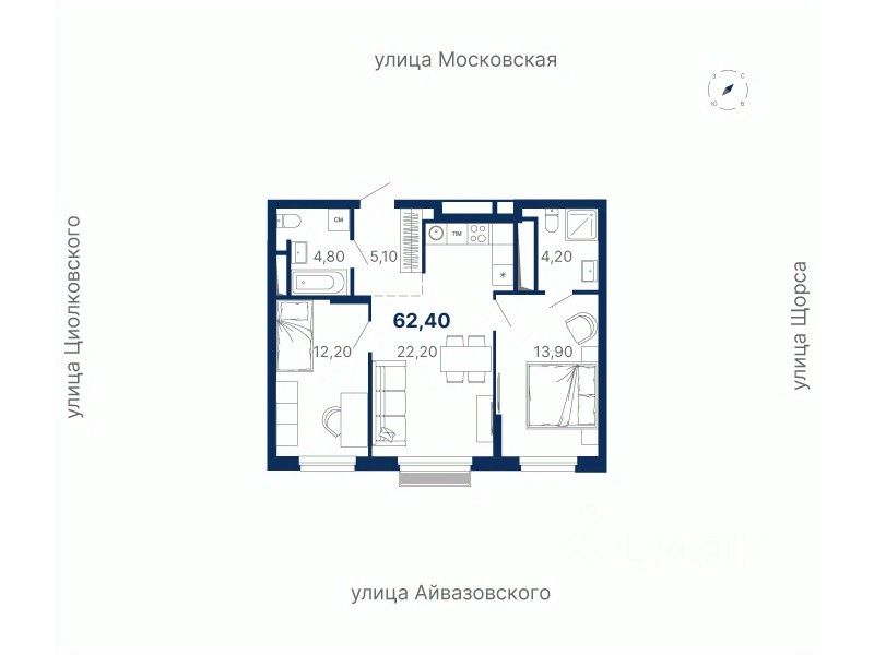 Удобное расположение между ул. Московская, Щорса, Айвазовского и Циолковского — рядом метро Чкаловская и всё необходимое для жизни.