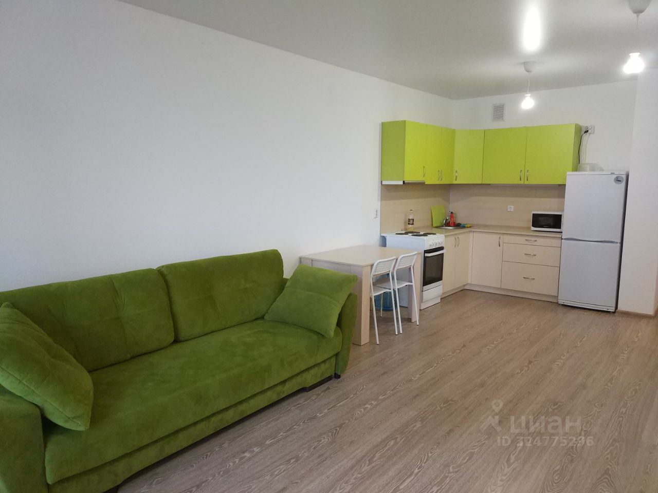 Мебель, сделанная на заказ, диван с большим спальным местом. Бытовая техника: холодильник, электроплита, микроволновка; стиральная машина.