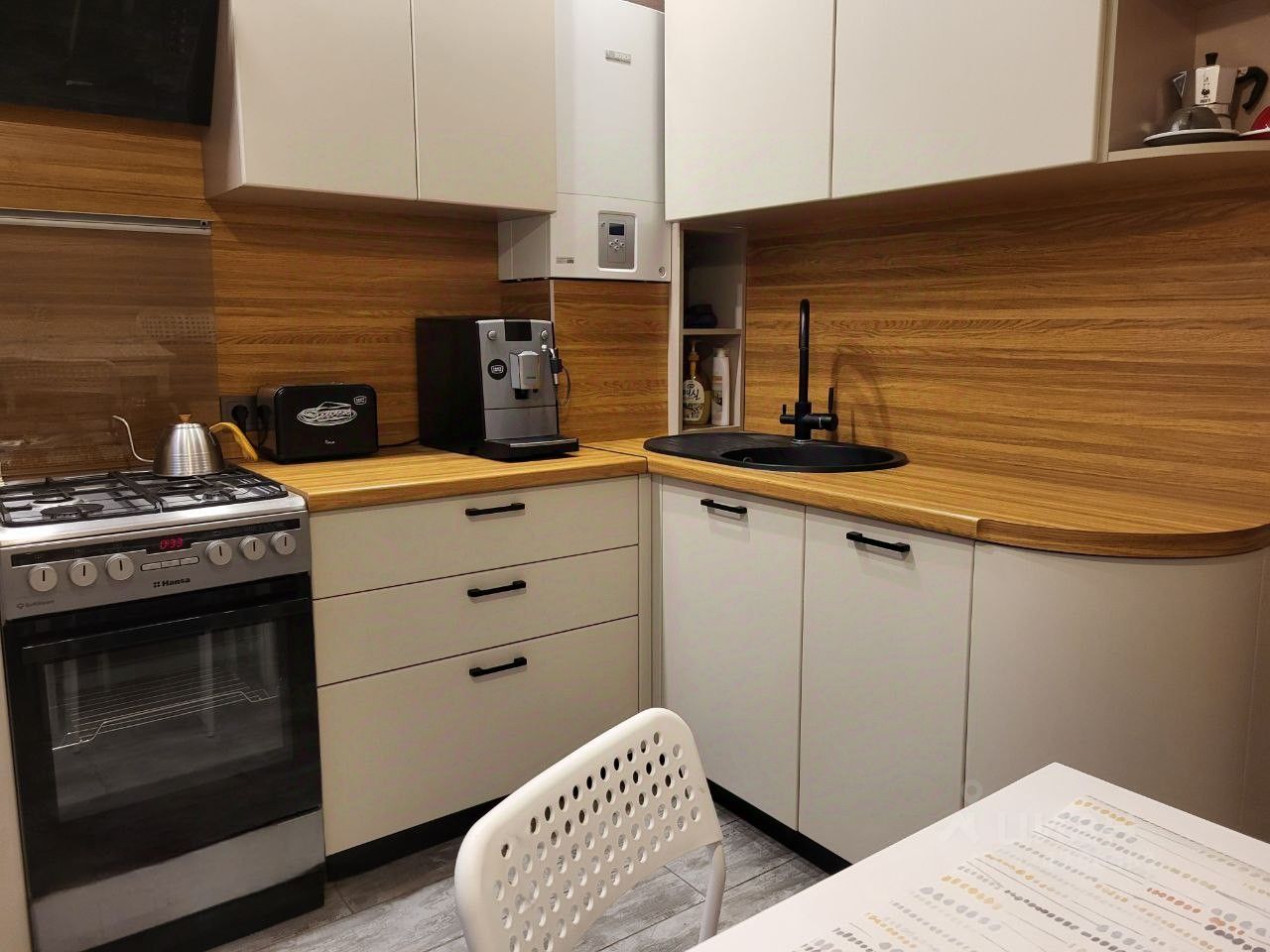 Газовый котел на отопление и горячую воду, что является очень экономичным при оплате коммунальных услуг .