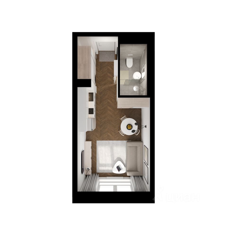 Продаётся квартира-студия площадью 22,4 кв.м на 9 этаже 29 этажного дома (Корпус 6, Секция 1) проекта ПИК Утёс. Светлый просторный подъезд на уровне земли, функциональная планировка, большие окна, предчистовая отделка.