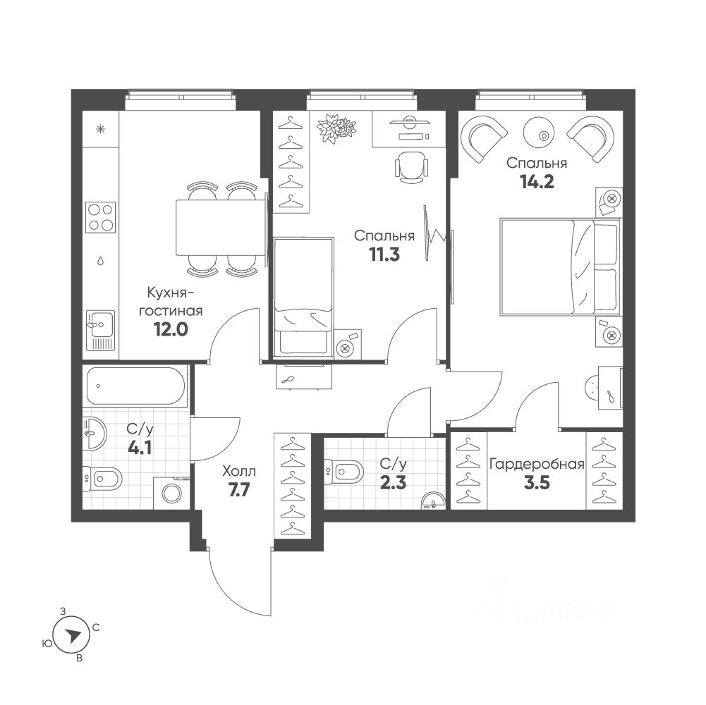 Продаётся 2-комнатная квартира в строящемся доме (Дом 11.2), срок сдачи: III-кв. 2028, общей площадью 55.1 кв.м., на 7 этаже. Новый жилой комплекс "Жилой район "Солнечный"" от застройщика "ГК Эталон" расположен по адресу: г. Екатеринбург, Золотистый бульвар.