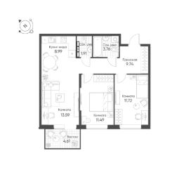 Продаётся 3-комнатная квартира в строящемся доме (ПК 19), срок сдачи: II-кв. 2028, общей площадью 62.58 кв.м., на 2 этаже. Расположение, транспортная доступность