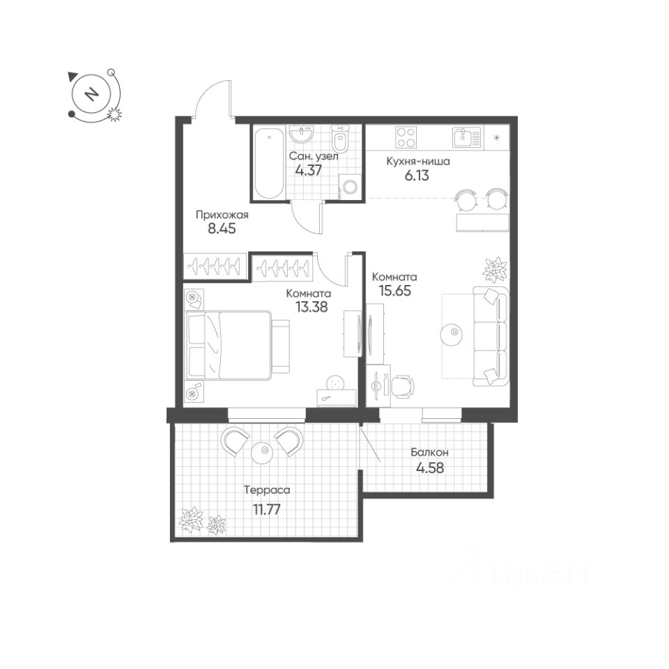 Продаётся 2-комнатная квартира в строящемся доме (ПК 19), срок сдачи: II-кв. 2028, общей площадью 52.88 кв.м., на 1 этаже. Расположение, транспортная доступность