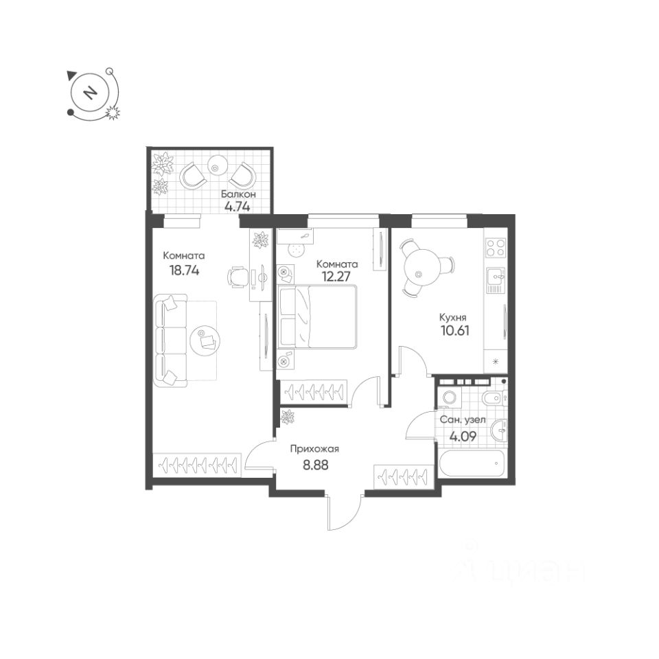 Продаётся 2-комнатная квартира в строящемся доме (ПК 19), срок сдачи: II-кв. 2028, общей площадью 56.01 кв.м., на 4 этаже. Расположение, транспортная доступность