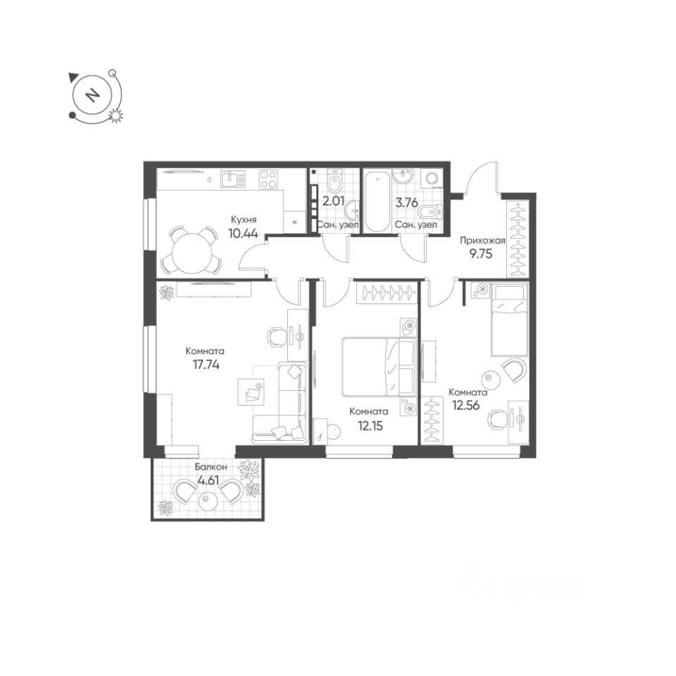 Продаётся 3-комнатная квартира в строящемся доме (ПК 19), срок сдачи: II-кв. 2028, общей площадью 69.79 кв.м., на 4 этаже. Расположение, транспортная доступность