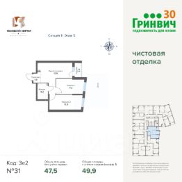 Продаётся 2-комнатная квартира в строящемся доме (Дом 12), срок сдачи: IV-кв. 2026, общей площадью 49.89 кв.м., на 5 этаже.