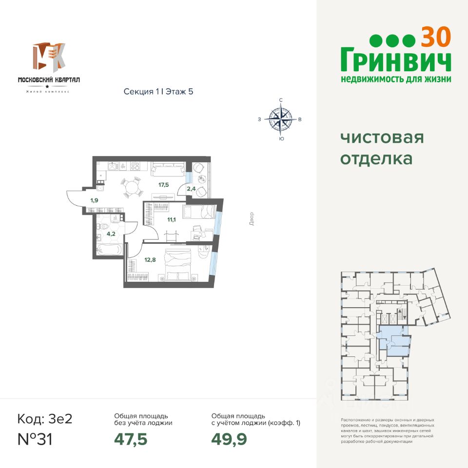 Продаётся квартира в современном жилом комплексе "Московский Квартал-2". 10 дом сдан!