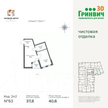 Продаётся 1-комнатная квартира в строящемся доме (Дом 12), срок сдачи: IV-кв. 2026, общей площадью 40.62 кв.м., на 7 этаже.