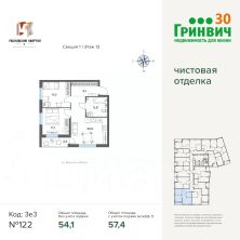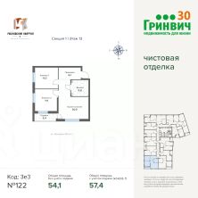 Продаётся 2-комнатная квартира в строящемся доме (Дом 12), срок сдачи: IV-кв. 2026, общей площадью 57.44 кв.м., на 13 этаже.