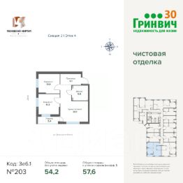 Продаётся 2-комнатная квартира в строящемся доме (Дом 12), срок сдачи: IV-кв. 2026, общей площадью 57.56 кв.м., на 4 этаже.