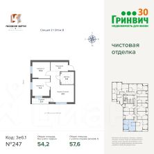Продаётся 2-комнатная квартира в строящемся доме (Дом 12), срок сдачи: IV-кв. 2026, общей площадью 57.56 кв.м., на 8 этаже.