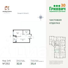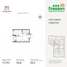 Продаётся 1-комнатная квартира в строящемся доме (Дом 12), срок сдачи: IV-кв. 2026, общей площадью 35.37 кв.м., на 12 этаже.