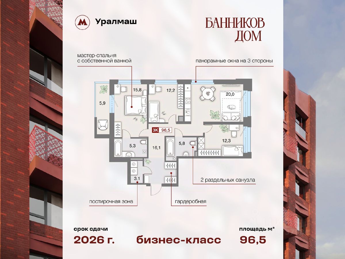 ЖК "Банников Дом" — дом бутик-класса в самом центре Уралмаша. Эксклюзивность проекта заключена в его камерности: всего 72 квартиры, расположенные в секциях высотой 5 и 8 этажей, создают атмосферу закрытого клуба, доступного лишь избранным. Одной из ключевых особенностей комплекса является приватная лаунж-терраса на крыше, где созданы различные зоны отдыха: летний коворкинг, уютная детская площадка, веранда для йоги, пергола с качелями, зона для воркаута и шезлонги для релаксации. Вашему комфорту также способствуют: приватное лобби с авторским дизайном, детская игровая комната, коворкинг, консьерж-сервис 24/7 и двухуровневый подземный отапливаемый паркинг. "Банников Дом" — выбор тех, кто ценит комфорт и уединение.