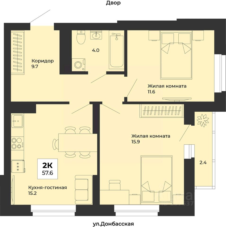 Продаётся 2-комнатная квартира в строящемся доме (Дом 5), срок сдачи: III-кв. 2028, общей площадью 57.6 кв.м., на 7 этаже. ЖК "Белая башня" - дома с примечательной архитектурой в сердце района Уралмаш. Комплекс расположен вблизи ведущих транспортных линий: ул. Донбасская и ул. Машиностроителей. "Белую башню" отличает развитая инфраструктура в сочетании с природными и историческими богатствами: рядом парк Победы, озеро Шувакиш, водонапорная "Белая башня". В пешей доступности несколько школ, детских садов, кафе и магазинов. Есть спортивная школа по дзюдо и самбо, лыжная база, спортивный комплекс "Олимп" и домашняя тренировочная арена ФК "Урал" - "СКБ-Банк Арена". В 5 минутах ходьбы ГКБ 14 и один из лучших диагностических центров области. Рядом с домом остановки трамваев, троллейбусов и автобусов.