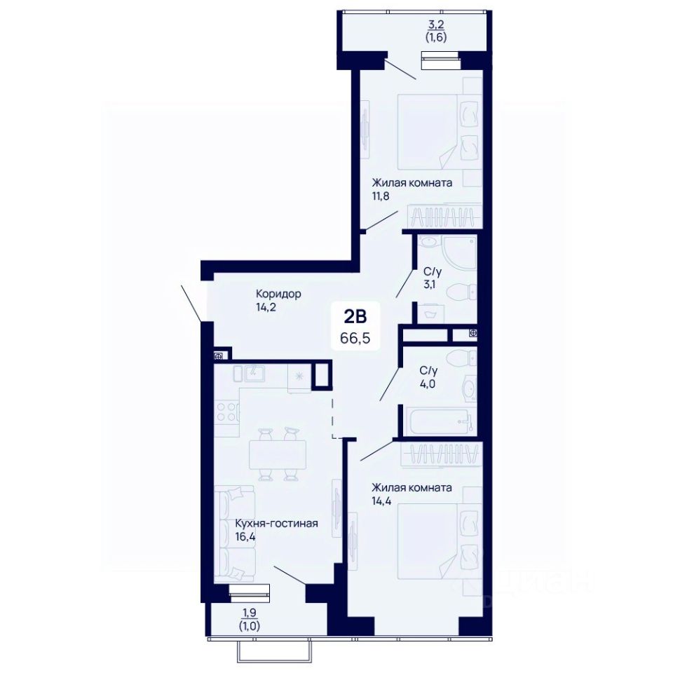 Общая площадь66,5 м²