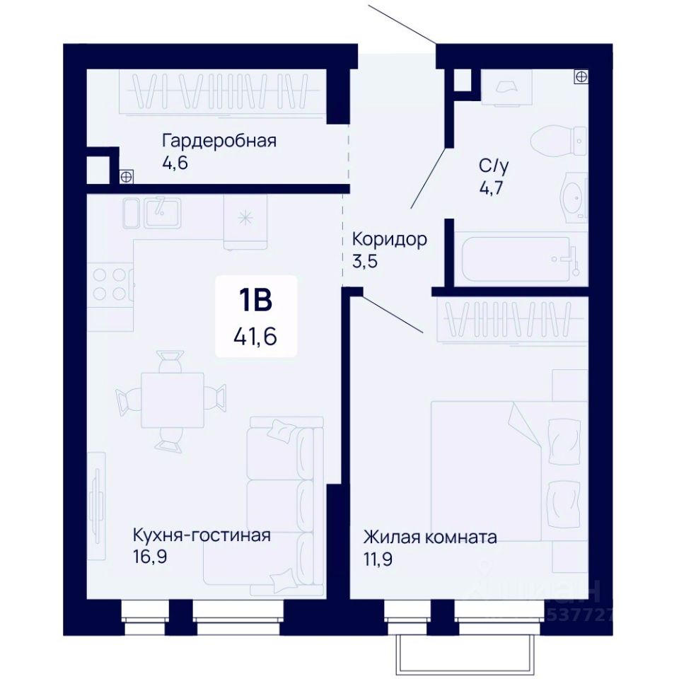 Общая площадь41,6 м²
