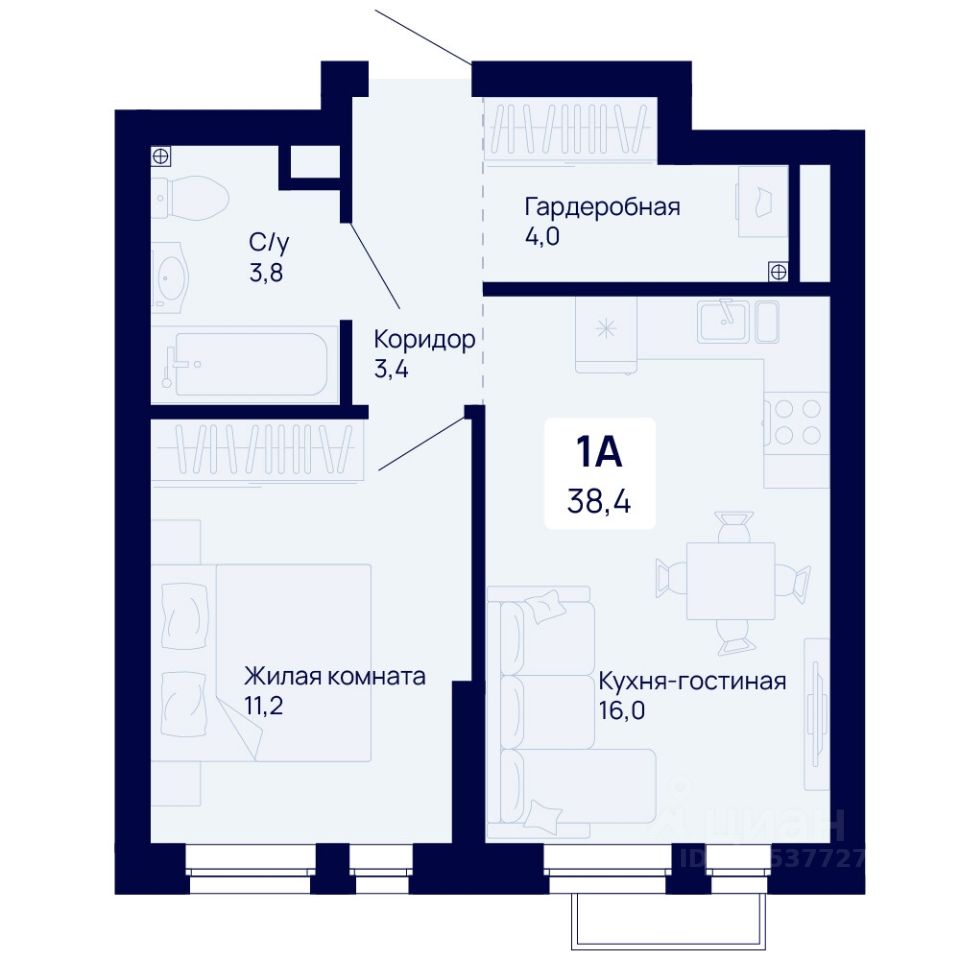 Общая площадь38,4 м²