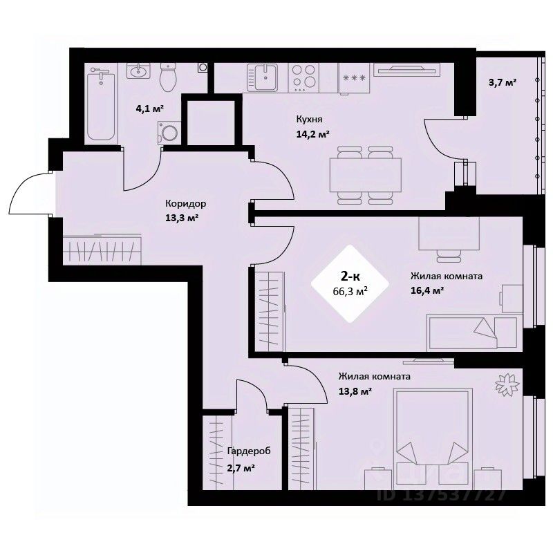 Общая площадь66,2 м²