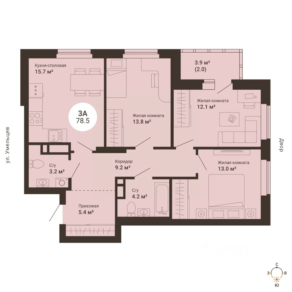 В жилом комплексе спроектированы квартиры на 1, 2 и 3 комнаты, в том числе студийного типа, с высотой потолков 2,72 м. Площадь помещений варьируется от 28,67 до 80,25 м². Лоджии и балконы в квартирах остеклены. "Ривьера Инвест Екатеринбург" сдает жилье с чистовой отделкой.