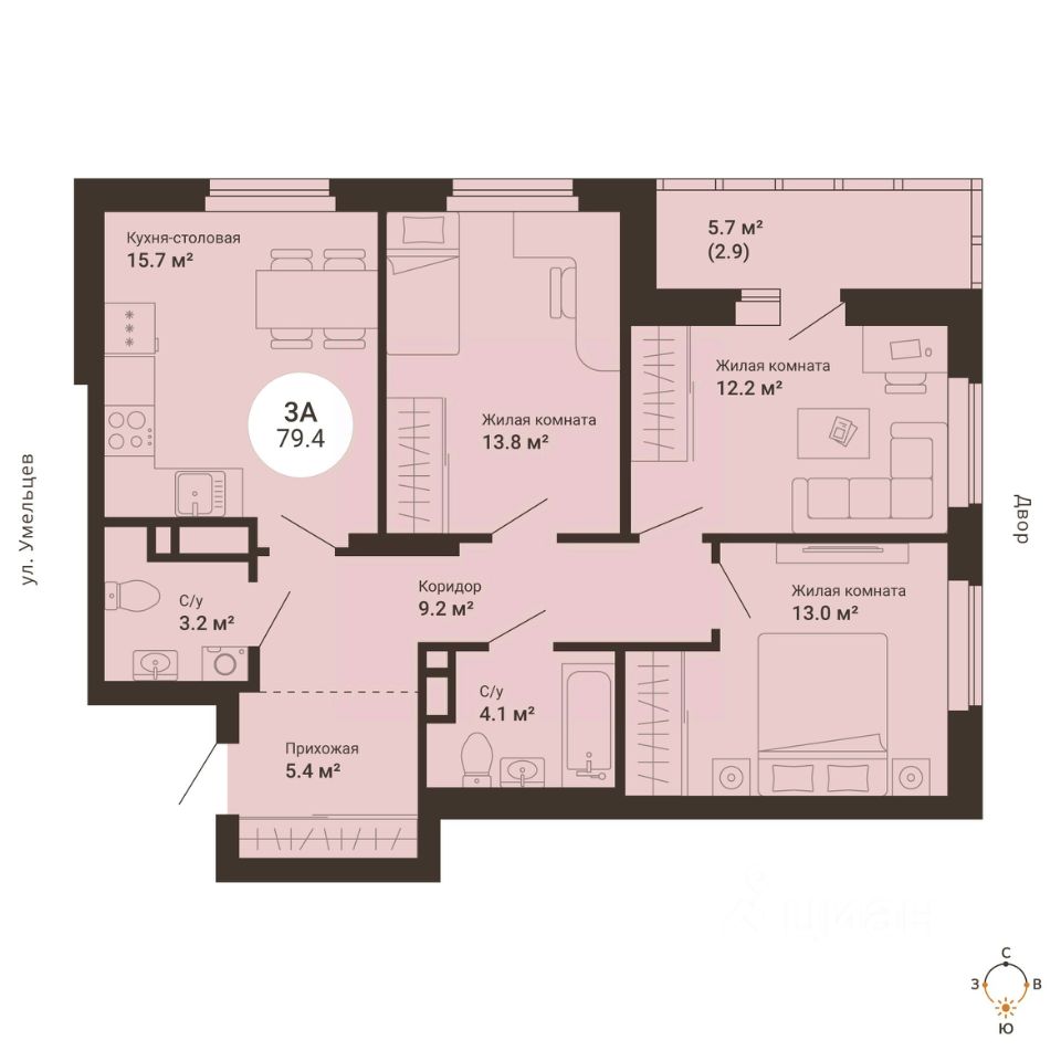 В жилом комплексе спроектированы квартиры на 1, 2 и 3 комнаты, в том числе студийного типа, с высотой потолков 2,72 м. Площадь помещений варьируется от 28,67 до 80,25 м². Лоджии и балконы в квартирах остеклены. "Ривьера Инвест Екатеринбург" сдает жилье с чистовой отделкой.