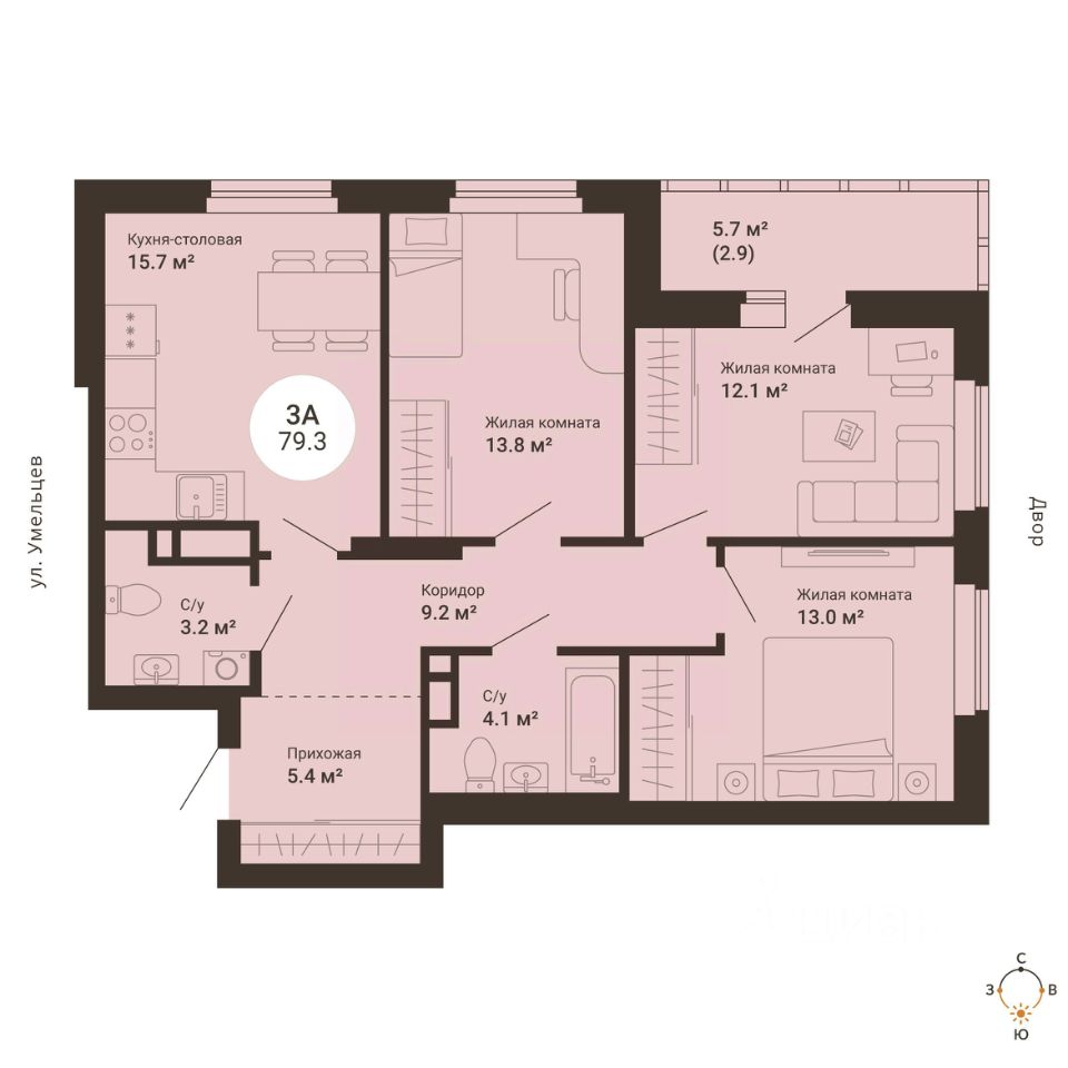 В жилом комплексе спроектированы квартиры на 1, 2 и 3 комнаты, в том числе студийного типа, с высотой потолков 2,72 м. Площадь помещений варьируется от 28,67 до 80,25 м². Лоджии и балконы в квартирах остеклены. "Ривьера Инвест Екатеринбург" сдает жилье с чистовой отделкой.