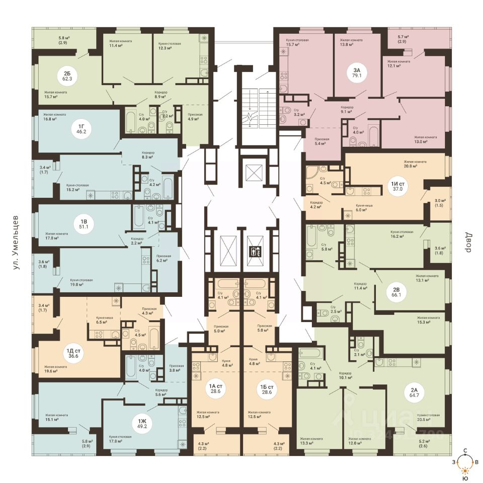По данным с официального сайта застройщика, ЖК "Южный сад" состоит из 5 высотных домов: