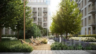 Благоустройство жилого комплекса это синтез искусства и природы. Поющие музыкальные инсталляции и поэтический променад. Оркестр растений: сирень, гортензии и яблони, чья цветущая палитра сменяется в течение года.
