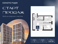 Продается 2-комн. квартира от застройщика с предчистовой отделкой в ЖК "Соната Парк" на 6 этаже. Общая площадь: 53.65 кв.м., жилая: 22.91 кв.м., площадь просторной кухни-столовой: 21.24 кв.м. Угловая квартира, идеально подойдет любителям тишины и панорамных видов. В квартире один совмещенный санузел. Высота потолков 2.72 м.