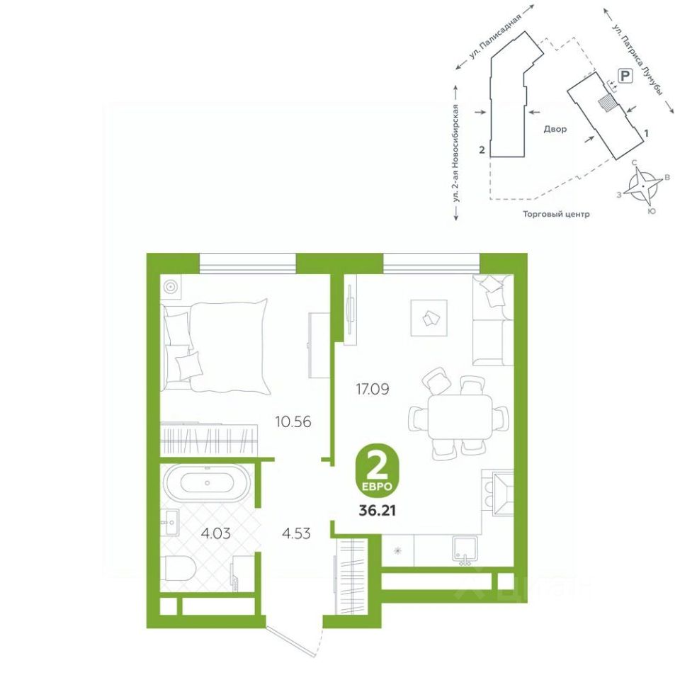 Квартира находится в ЖК "Бодровский" от федерального застройщика "Паритет Девелопмент". Это жилой комплекс комфорт-класса с современной архитектурой, расположенный в Екатеринбурге в районе улиц Патриса Лумумбы и 2-й Новосибирской.
