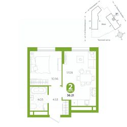 площадь квартиры - 36,21 кв.м