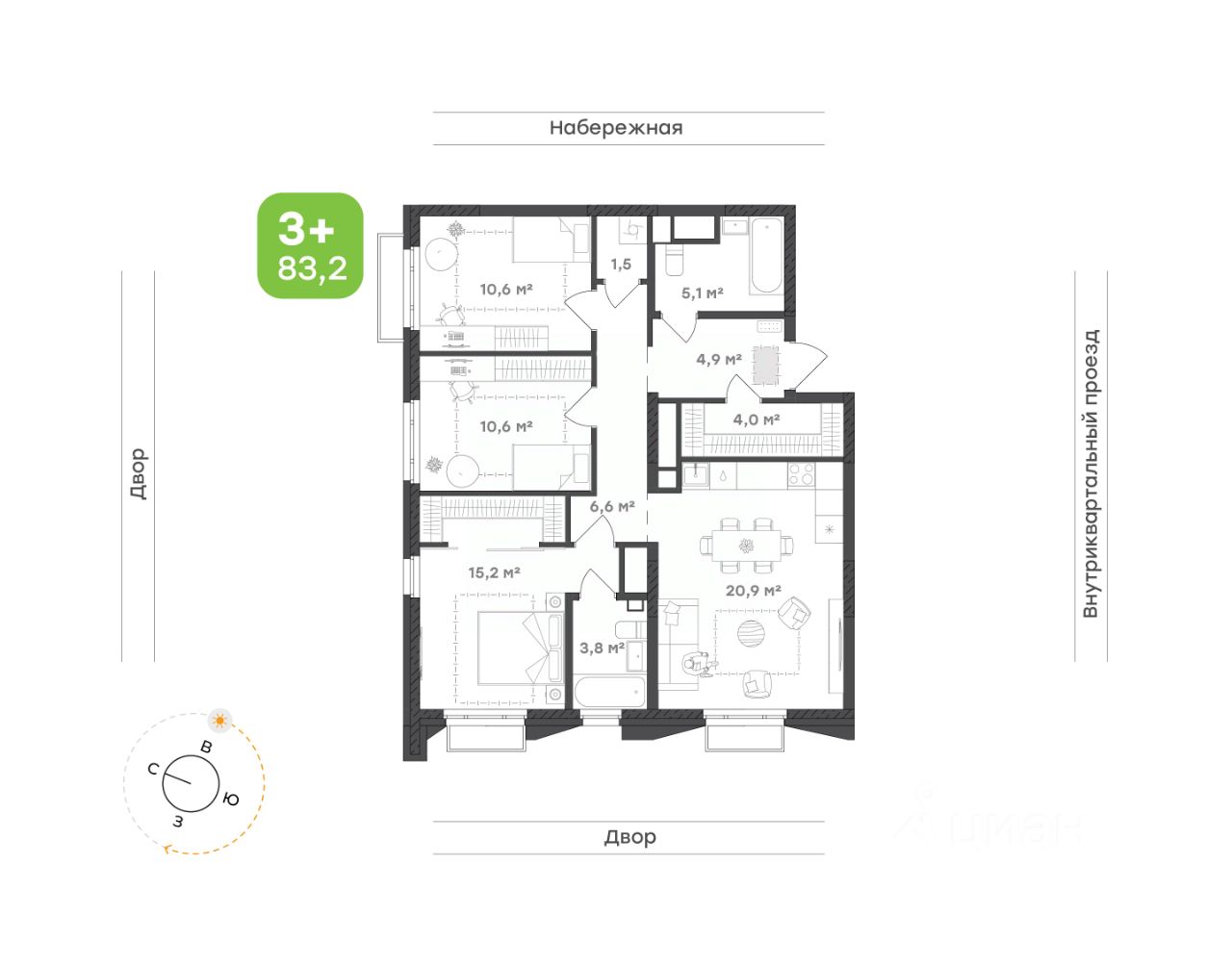 Продаётся 3-комнатная квартира в строящемся доме (1 этап), срок сдачи: I-кв. 2028, общей площадью 83.2 кв.м., на 24 этаже. Новый жилой комплекс "Береговой" от застройщика "Талан" расположен по адресу: г. Екатеринбург, улица Щербакова.