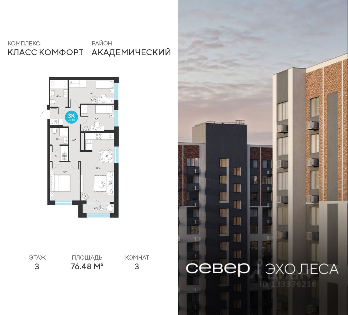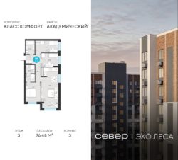 Продаётся квартира площадью 76.48 м2 в жилом комплексе "Эхо леса".