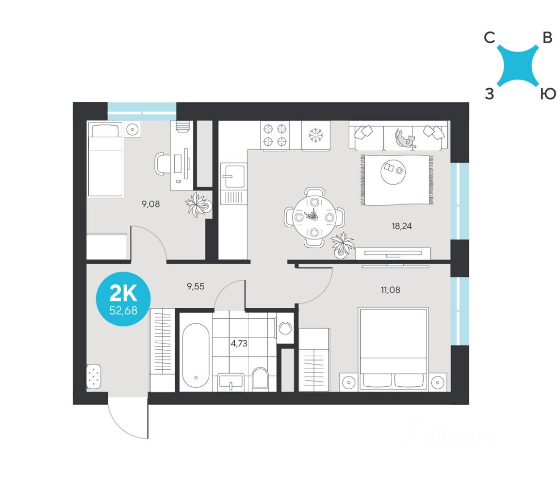 Продаётся квартира площадью 52.68 м2 в жилом комплексе "Эхо леса".