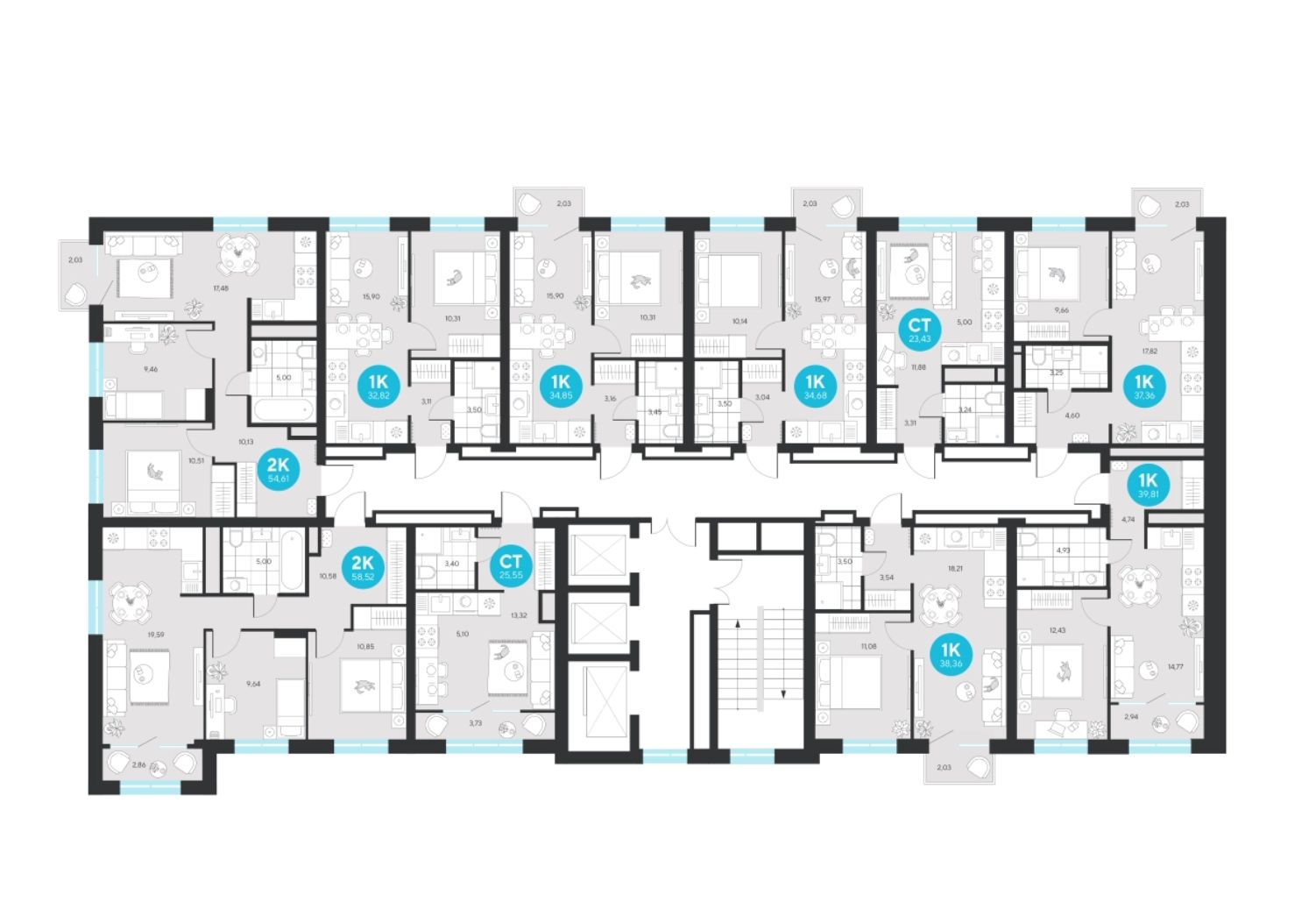 Квартира находится на 10 этаже, жилая площадь квартиры 20.49 м2, площадь просторной кухни — 19.59 м2. Среди особенностей планировки — изолированные комнаты с окнами на одну сторону, 1 совмещённый санузел.