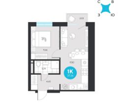 Продаётся квартира площадью 37.36 м2 в жилом комплексе "Эхо леса".