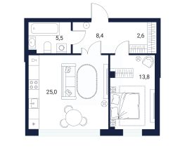 Продаётся квартира площадью 55.3 м2 в клубном доме "Литературный".