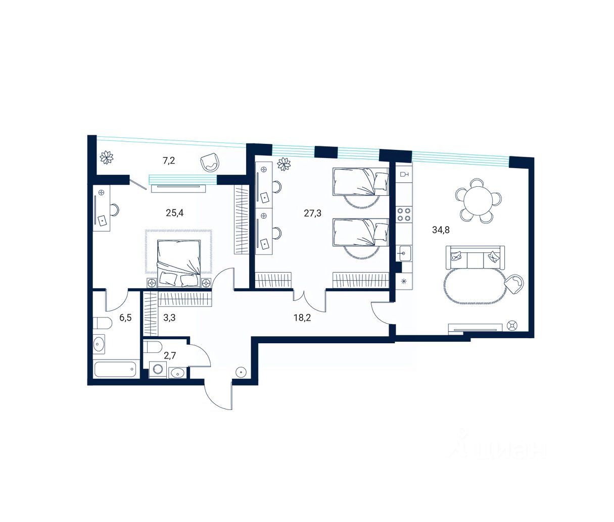 - квартиры от студий до просторных 3-комнатных вариантов