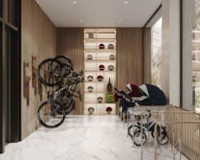 Парадные выполнен в современном классическом стиле с геометрическими линиями и естественными оттенками. Авторский дизайн подчёркивают лифтовые порталы, почтовые ящики и подсветки.