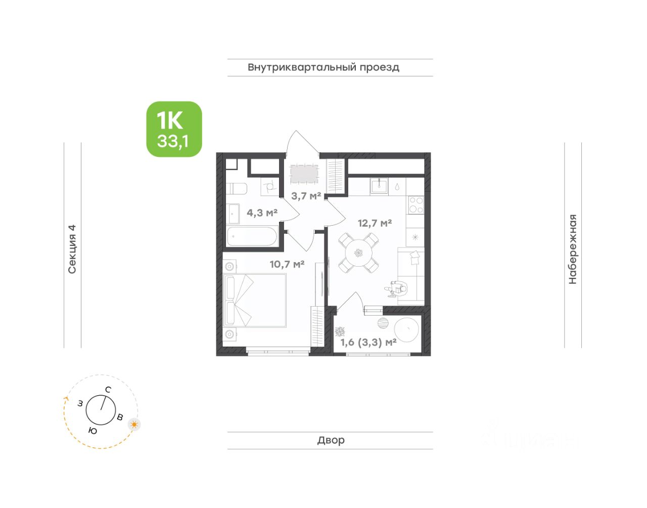 Продаётся 1-комнатная квартира в строящемся доме (1 этап), срок сдачи: I-кв. 2028, общей площадью 33.1 кв.м., на 7 этаже. Новый жилой комплекс "Береговой" от застройщика "Талан" расположен по адресу: г. Екатеринбург, улица Щербакова.