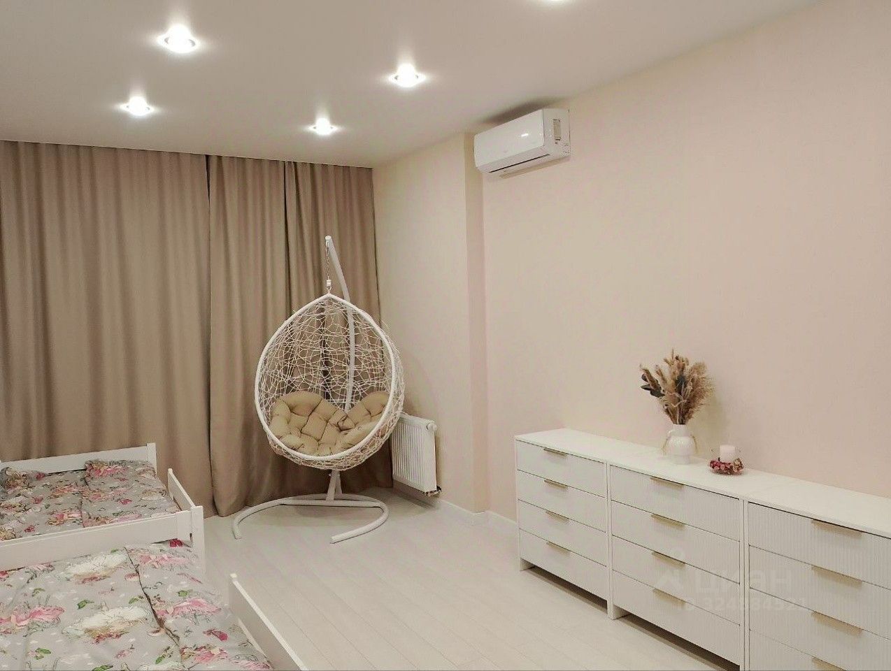 В квартире выполнен ремонт в современном спокойном стиле. Основная идея планировки - функциональность, у каждого есть свое пространство - три спальни 18, 21, 16 кв. м. (в каждой есть кондиционер), в спальнях - панорамные окна, три санузла, кухня-гостиная 28 кв. м, высота потолков 2,7 м ! много света, воздуха и пространства.