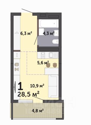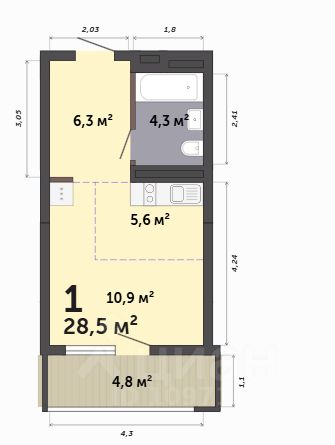 Продаётся студия в строящемся доме (Дом 6), срок сдачи: III-кв. 2027, общей площадью 28.5 кв.м., на 8 этаже. Расположение, транспортная доступность